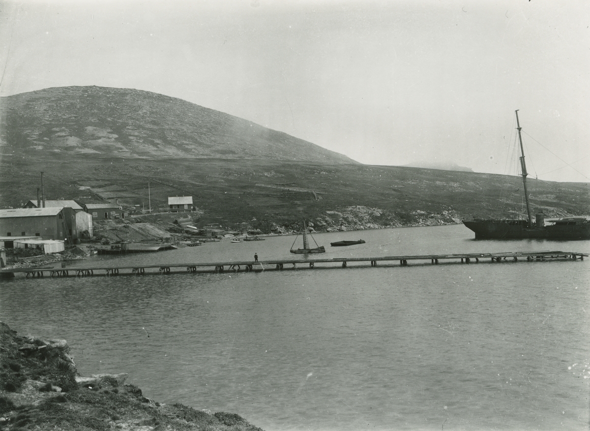Bild från expedition i Antarktisområdet. Vy över hamn nedanför berg.