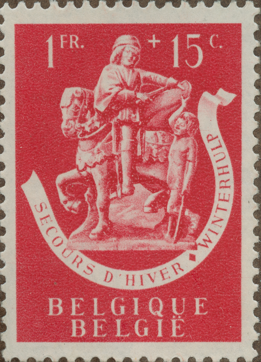 Frimärke från Belgien, 1942. Motiv av St. Martin som offrar sin kappa.