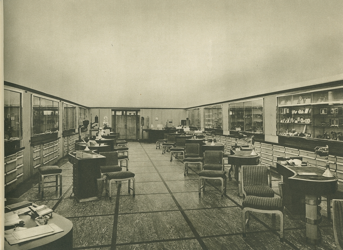 "Verkaufsraum", "Firma Campbell, Hamburg, Kugelzonenspiegelleuchten".