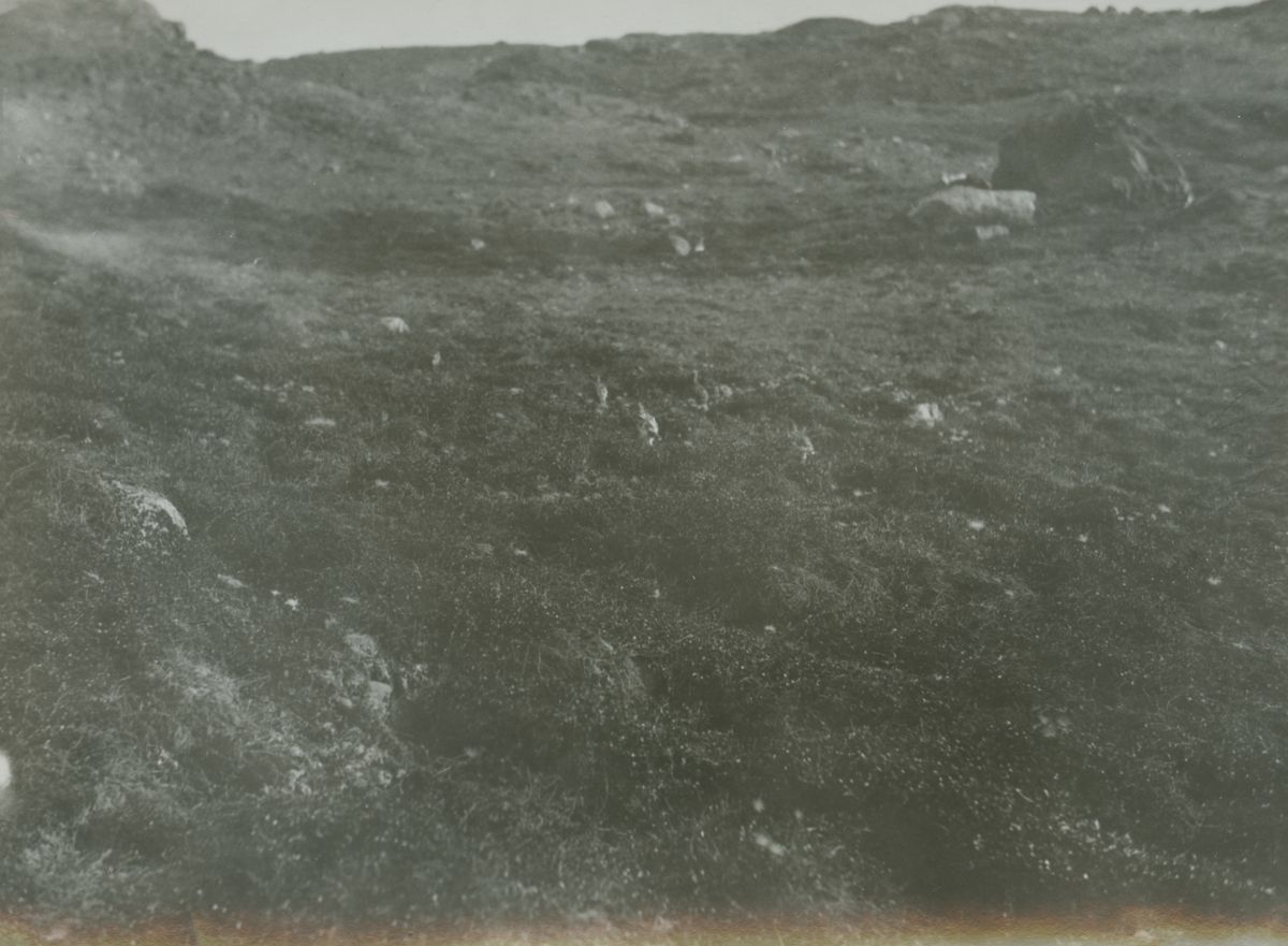 Fotografi från expedition till Östgrönland 1929. Dansk-svensk expedition under ledning av Lauge Koch. Svenska deltagare: Oscar Kulling och Helge Backlund. Närbild av ett kargt bergslandskap.