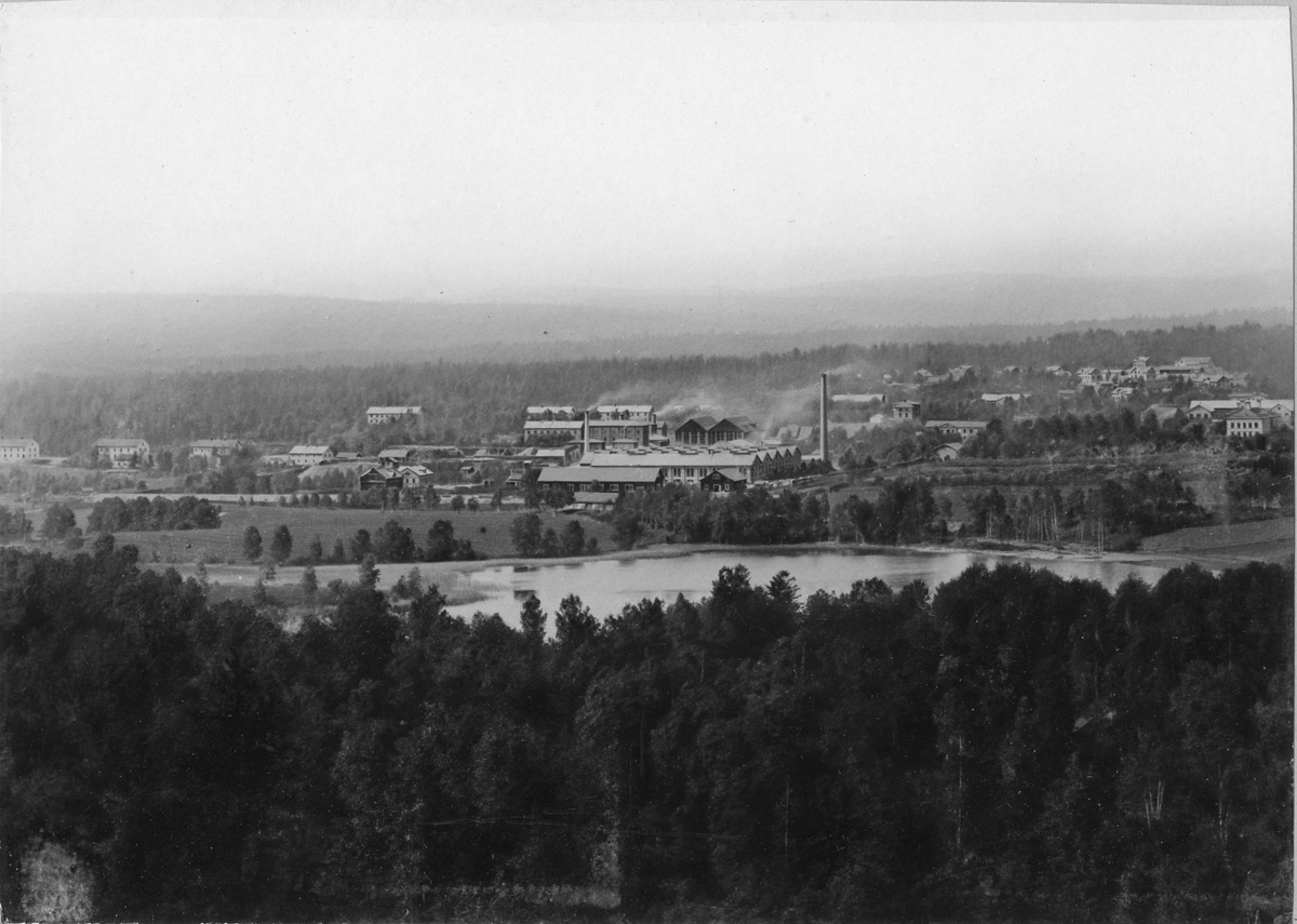 Titel: Hofors Jernverk. Fotografiet är en gåva till säjaren av Göth Odelberg i september 1901 och tillhör en samling av 13 fotografier.