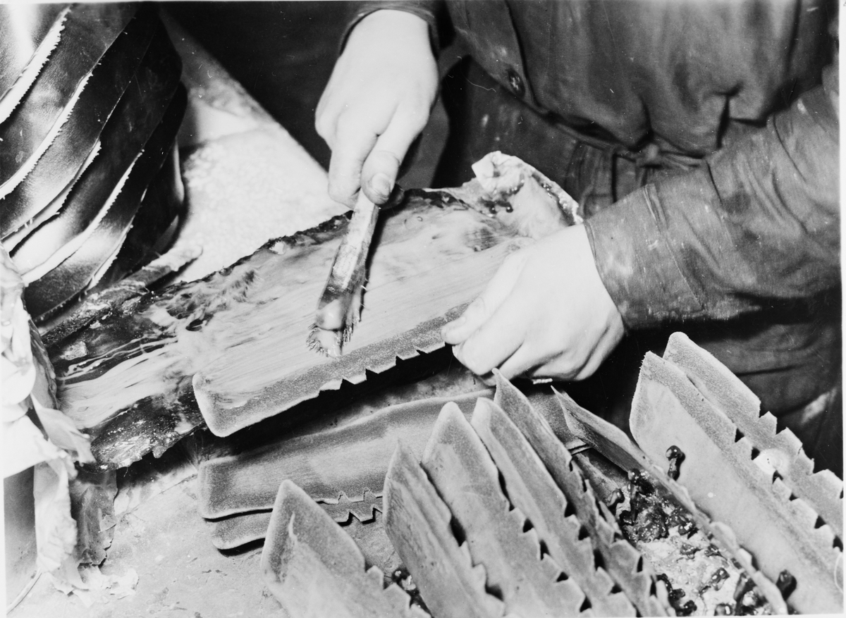 Bakkappor och tåkappor bestrykes med klister.