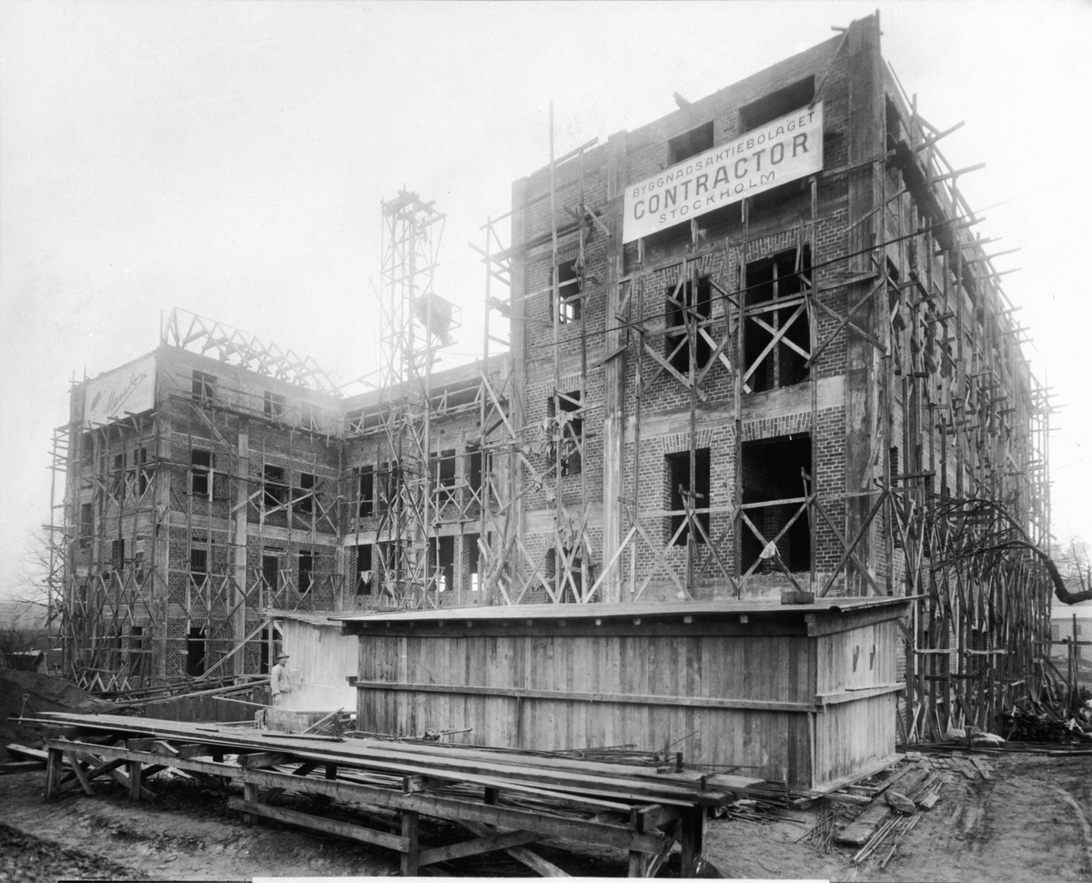 Byggherre: Byggnadsaktiebolaget Contractor, Stockholm. Första fabriksbygget för AB Chokladfabriken Marabou. Arkitekt prof. Ivar Tengbom.