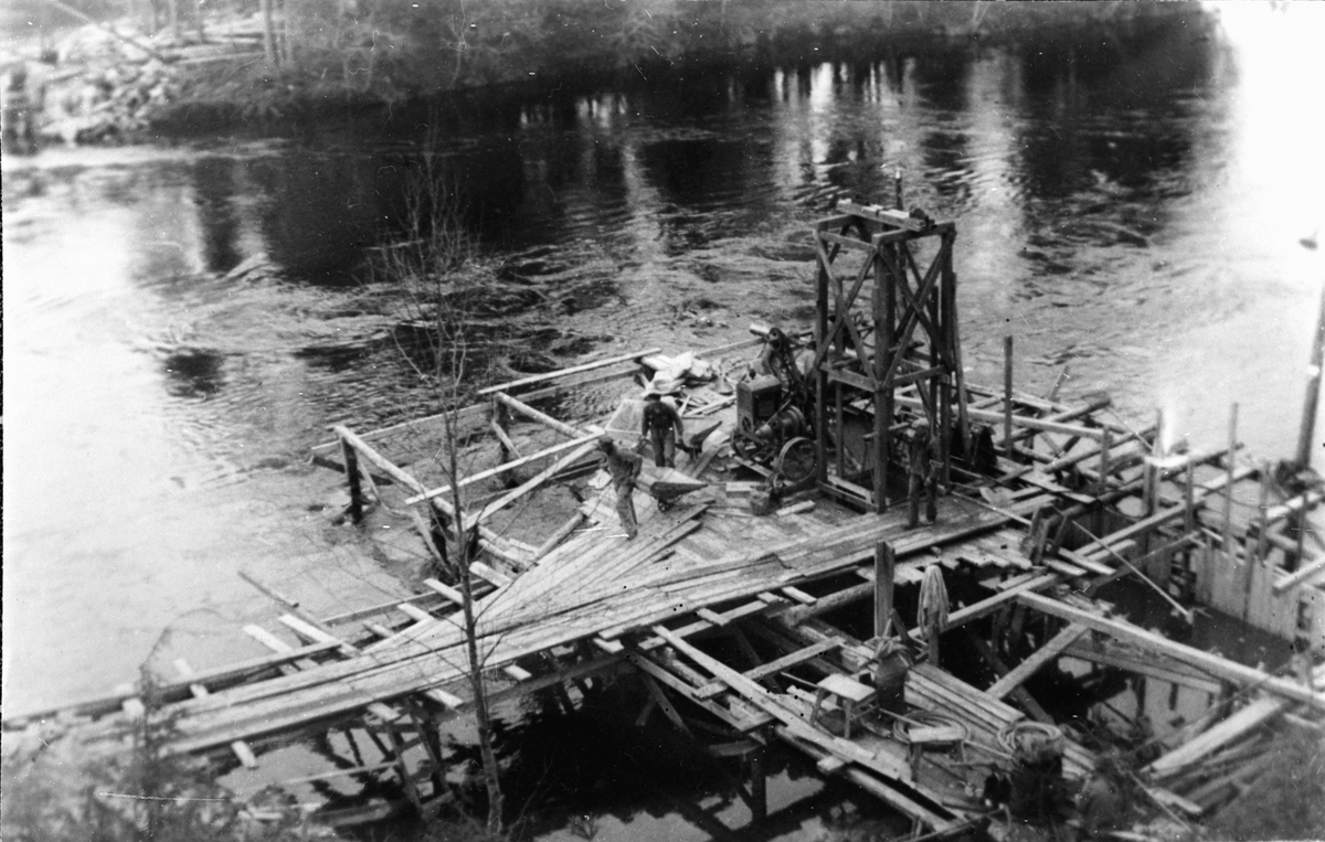 Byggherre: Byggnadsaktiebolaget Contractor, Stockholm. Myrabron. Gjutning för landfäste.