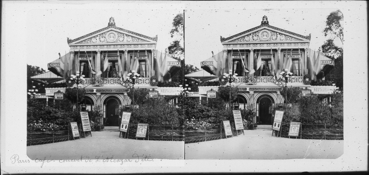 Stereoskopfotografi på glas, café i Paris.