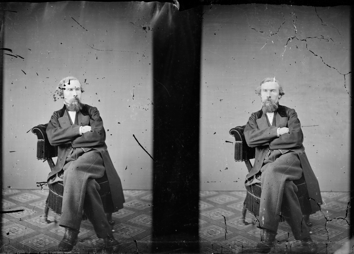 Ateljéfotografi, våtplåt, kollodiumnegativ, dubbelporträtt av man.