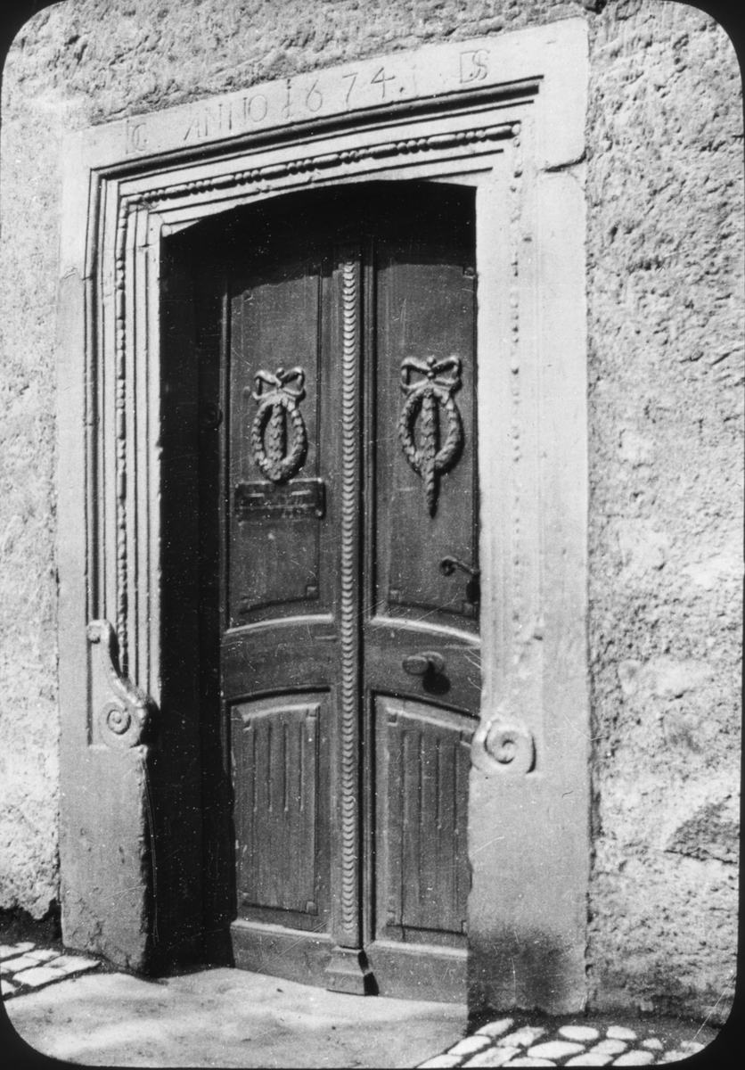 Skioptikonbild med motiv av dörr från 1674 i Erfurt.