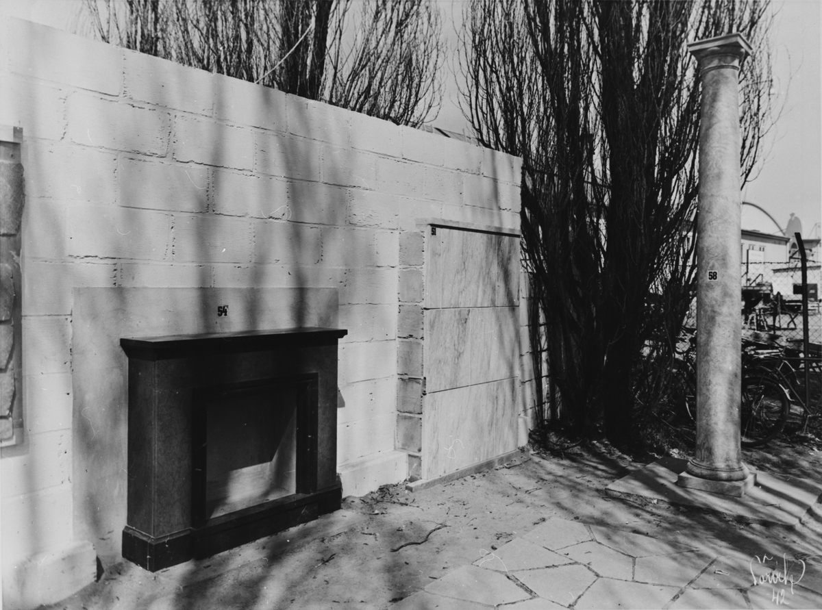 Bröderna Gustafssons stenhuggerier AB, Stockholm. Svenk Naturstensutställning. Öppen spis och en pelare. S