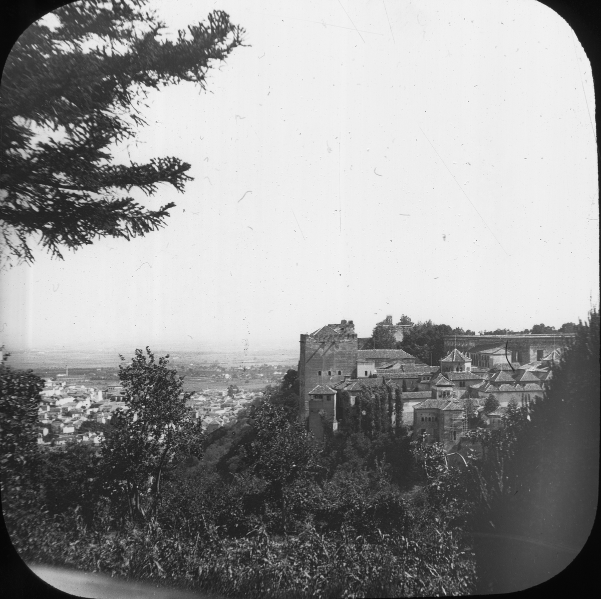 Skioptikonbild med vy över Granada och slottet Alhambra.