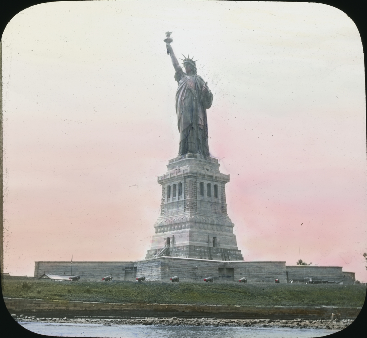 Skioptikonbild av Frihetsgudinnan, Statue of Liberty, på Liberty Island i New York.