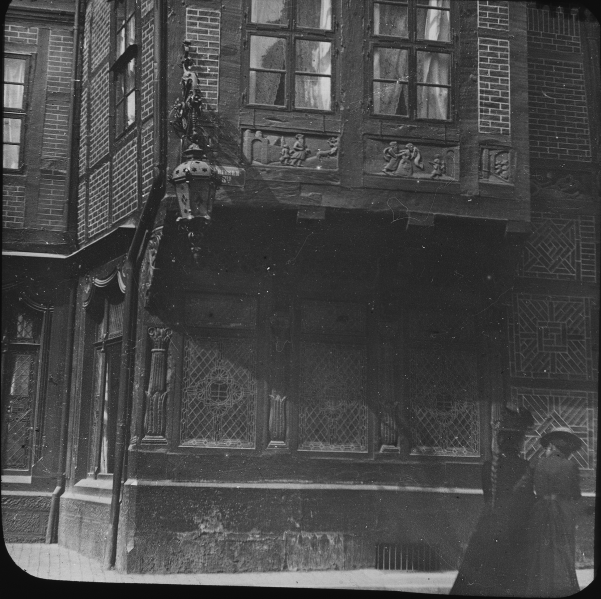 Skioptikonbild med motiv av okänt hus i Hildesheim.