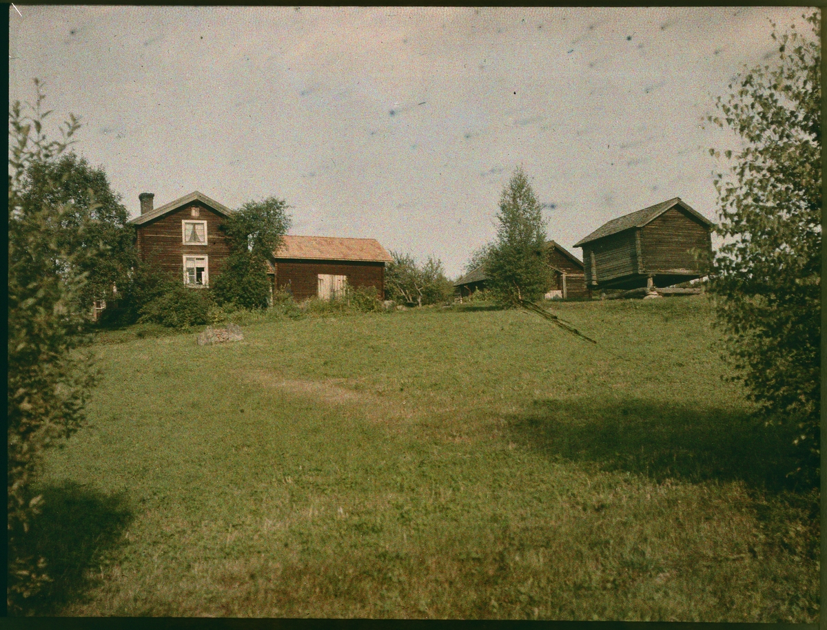 Lumière-autokrom. Torpstuga med 3 uthus.