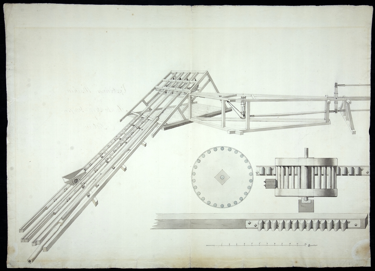 Polhems malmuppfordringsverk, Humbobergets Gruvor, Dalarna ritad av Carl Johan Cronstedt