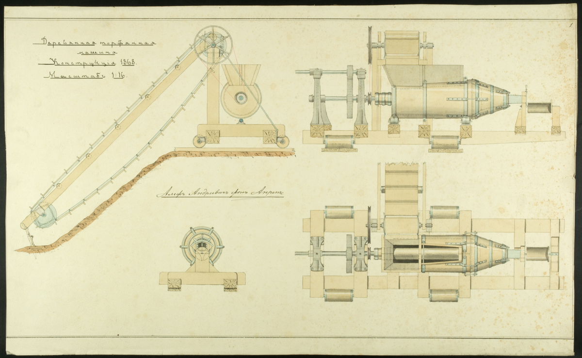 Rysk skiss 1868, Göteborg, ur boken med ritningar mm 1868-1887, av den svenske torvmaskinkonstruktören Aleph Anrep.