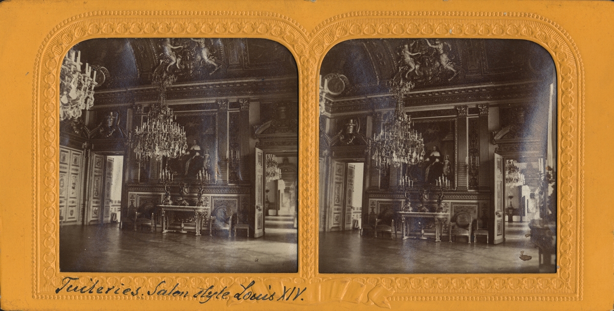 Stereobild av interiör slottet Palais des Tuileries, Salon style Louis XIV.