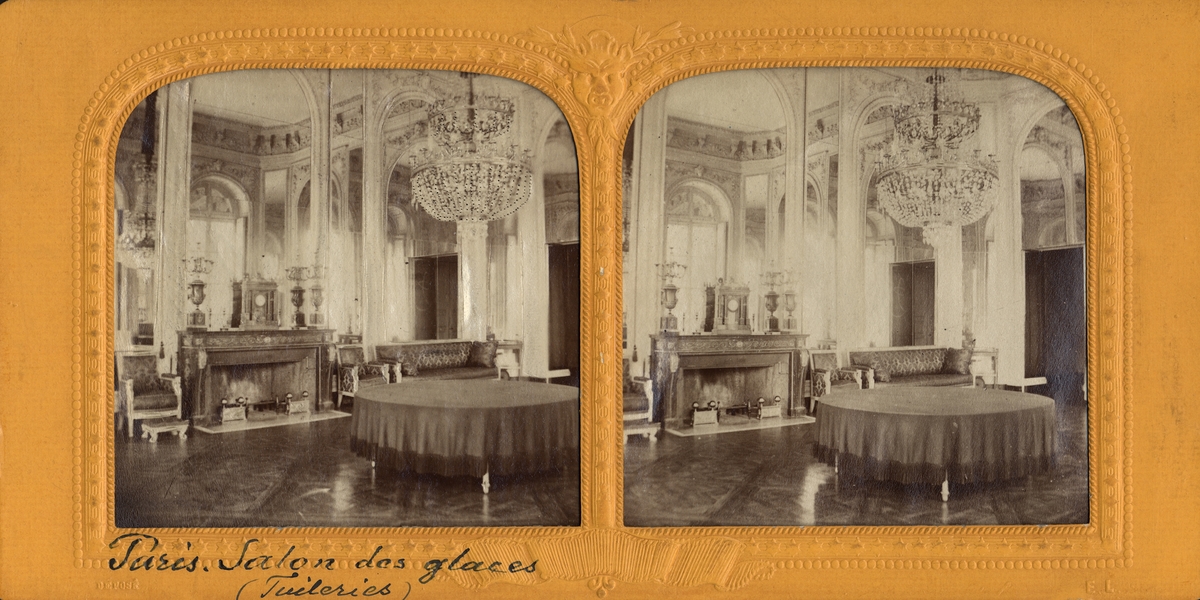 Stereobild av interiör i slottet Palais des Tuileries, Salon des glaces.