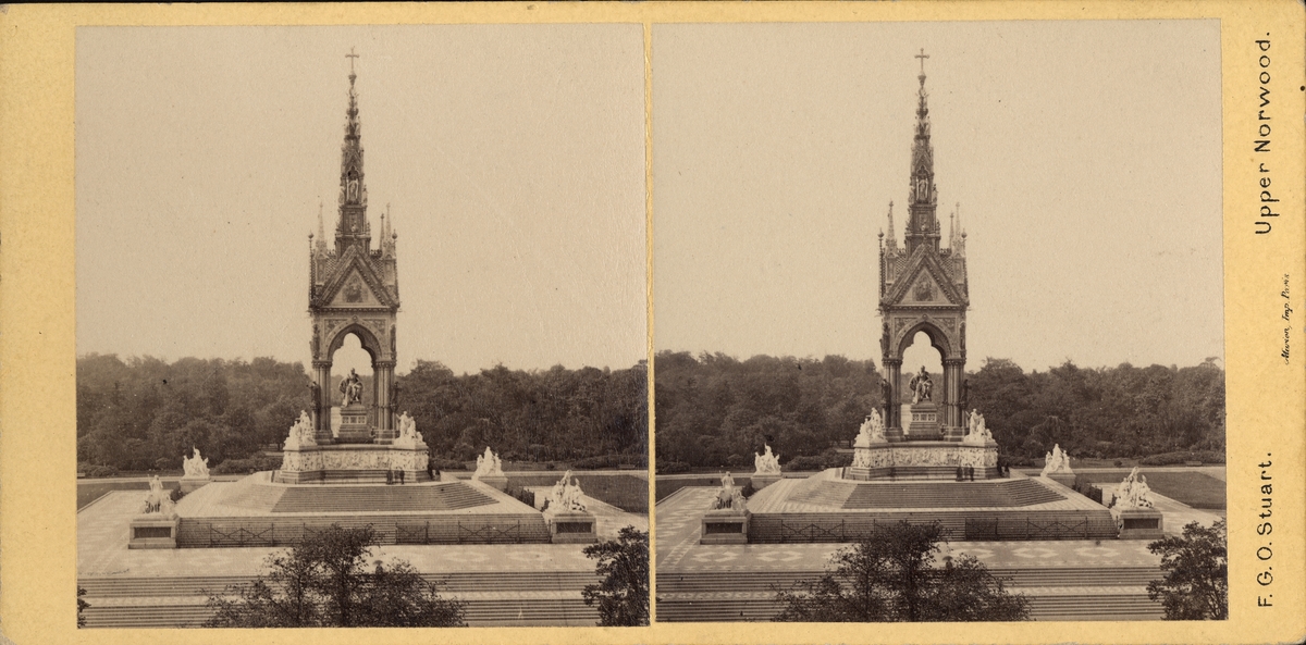 Stereobild av monument i park.
