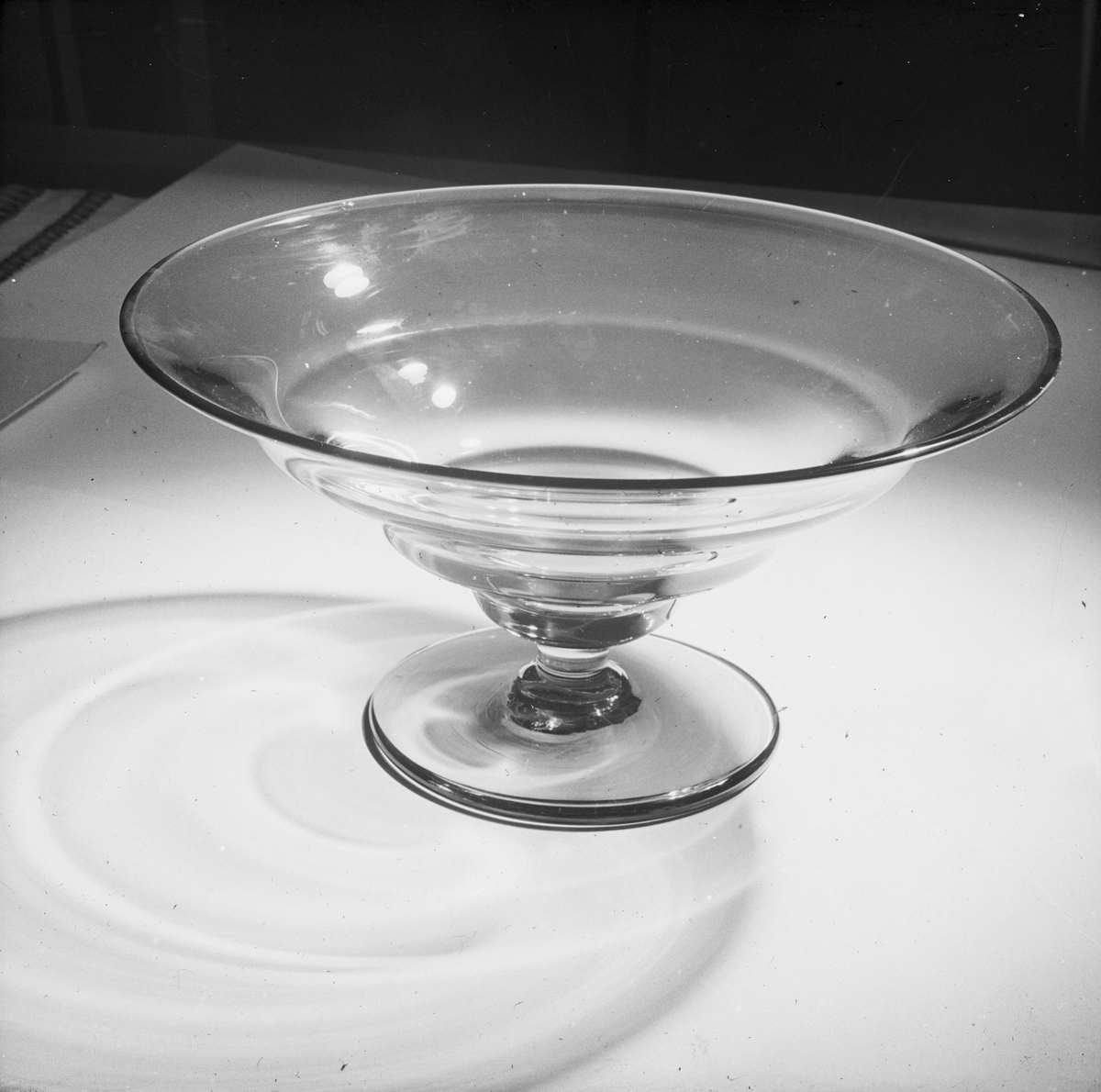 Titel: Bild om glaset, dess tillverkning och historia, med motiv av färdigt glas, tillverkningsprocessen och hantverket.