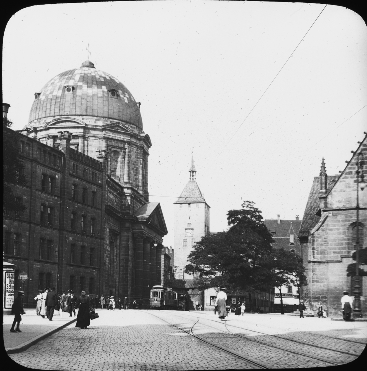 Skioptikonbild med motiv av kyrkan S:t Elisabeth i Nürnberg.