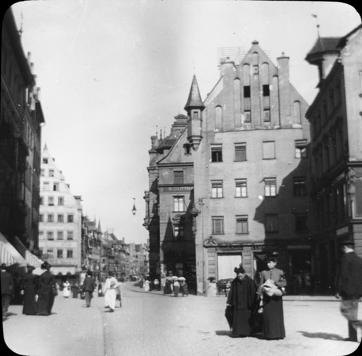Skioptikonbild med motiv från gatan Adlerstrasse i Nürnberg.