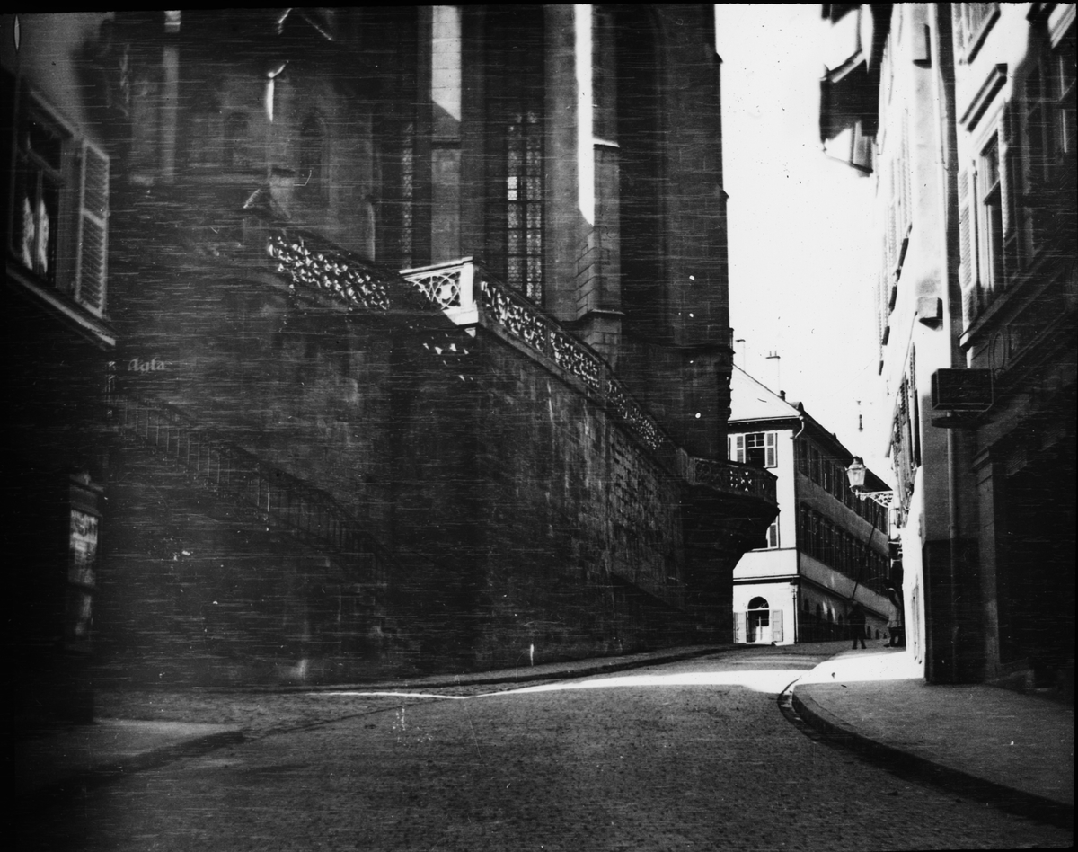 Skioptikonbild med motiv från Tübingen, mökligen sida av katedralen.