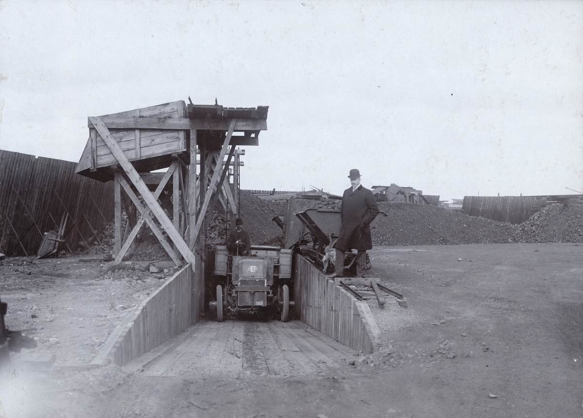 Daimler lastbil, demonstration stenbrott omkring 1905. Bild i serie av tre. DIG92699-DIG92701.