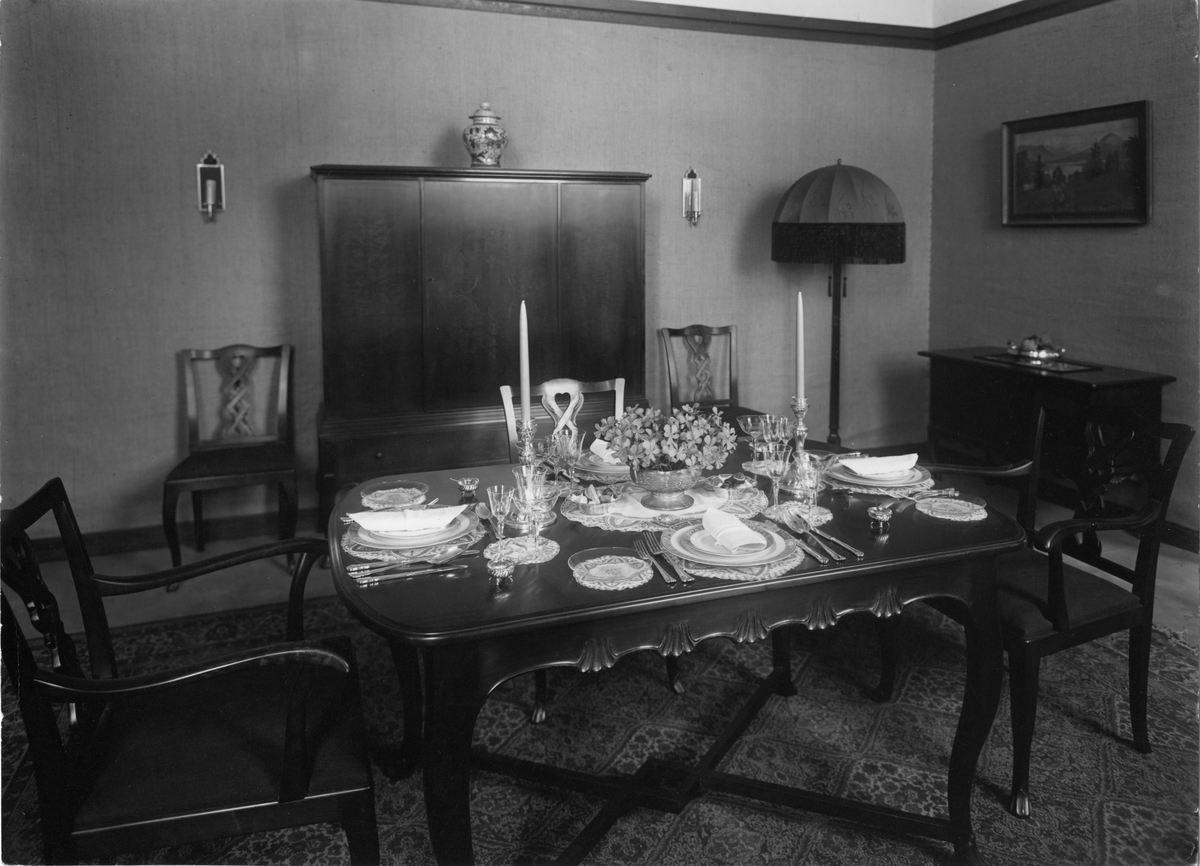 Bygge och Bo-utställningen i Östersund 1929. Dukat bord i matsal.