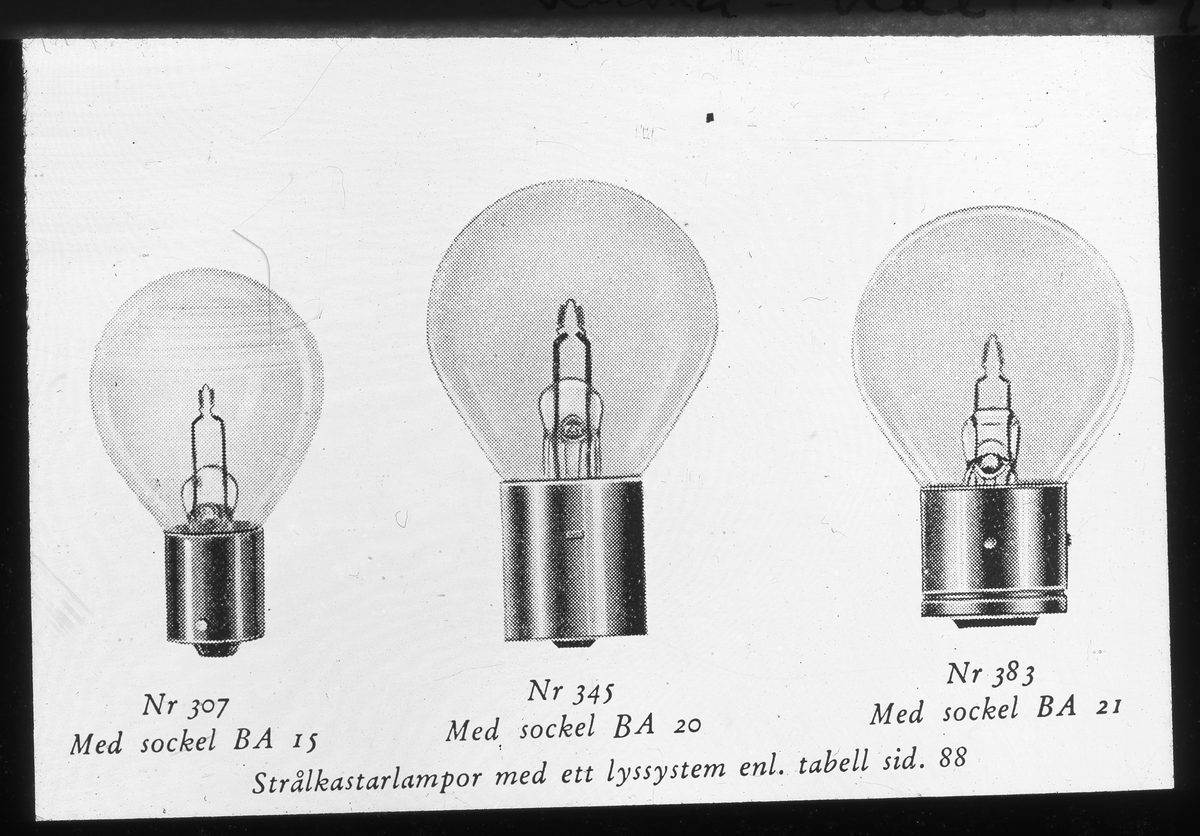 Olika strålkastarlampor.