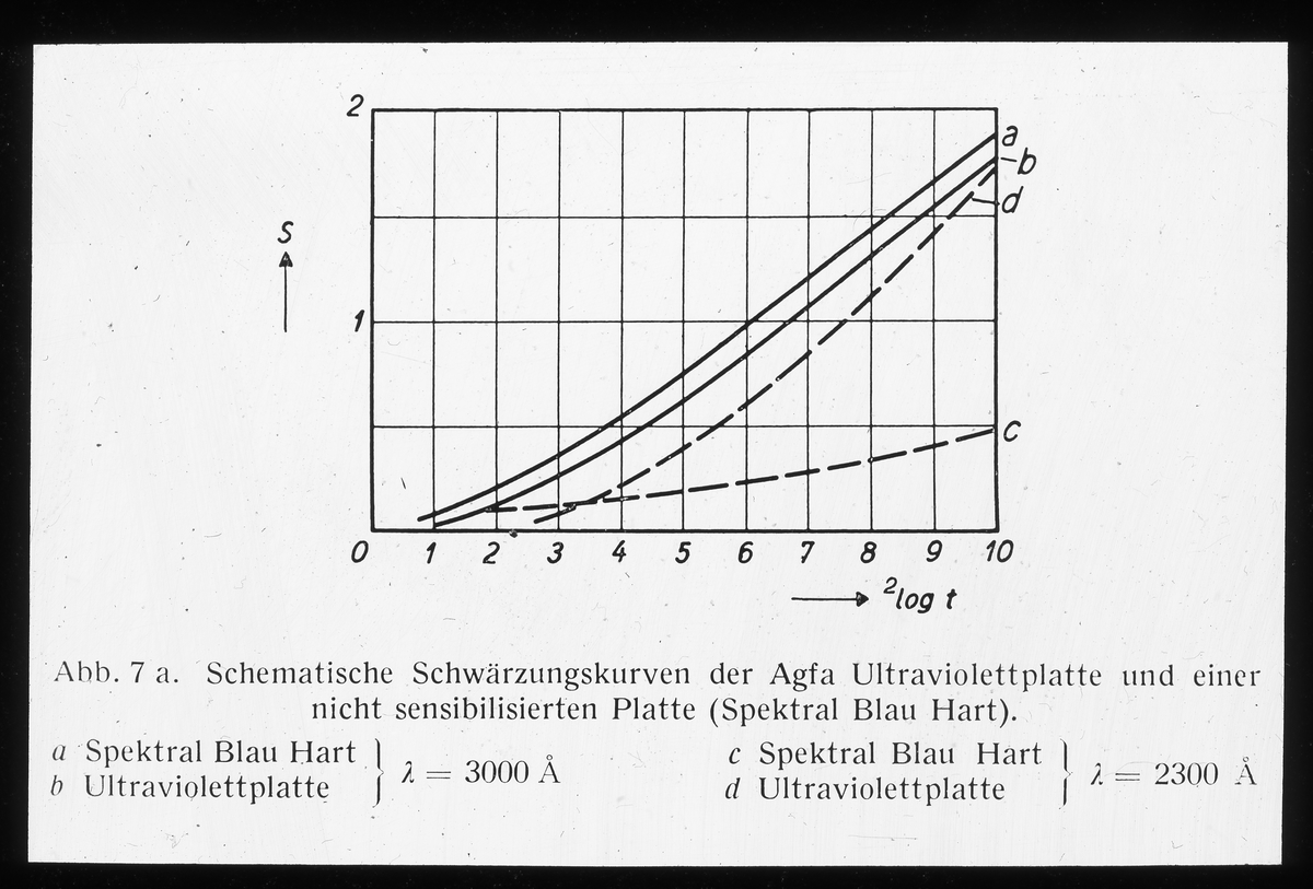 Svärtningskurvan för en Agfa Ultraviolett plåt och en osensibiliserad plåt.