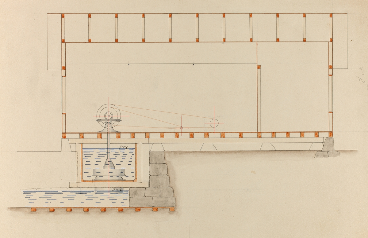 Delförstoring av ritning över förslag till Lindesbergs elektricitetsverk.