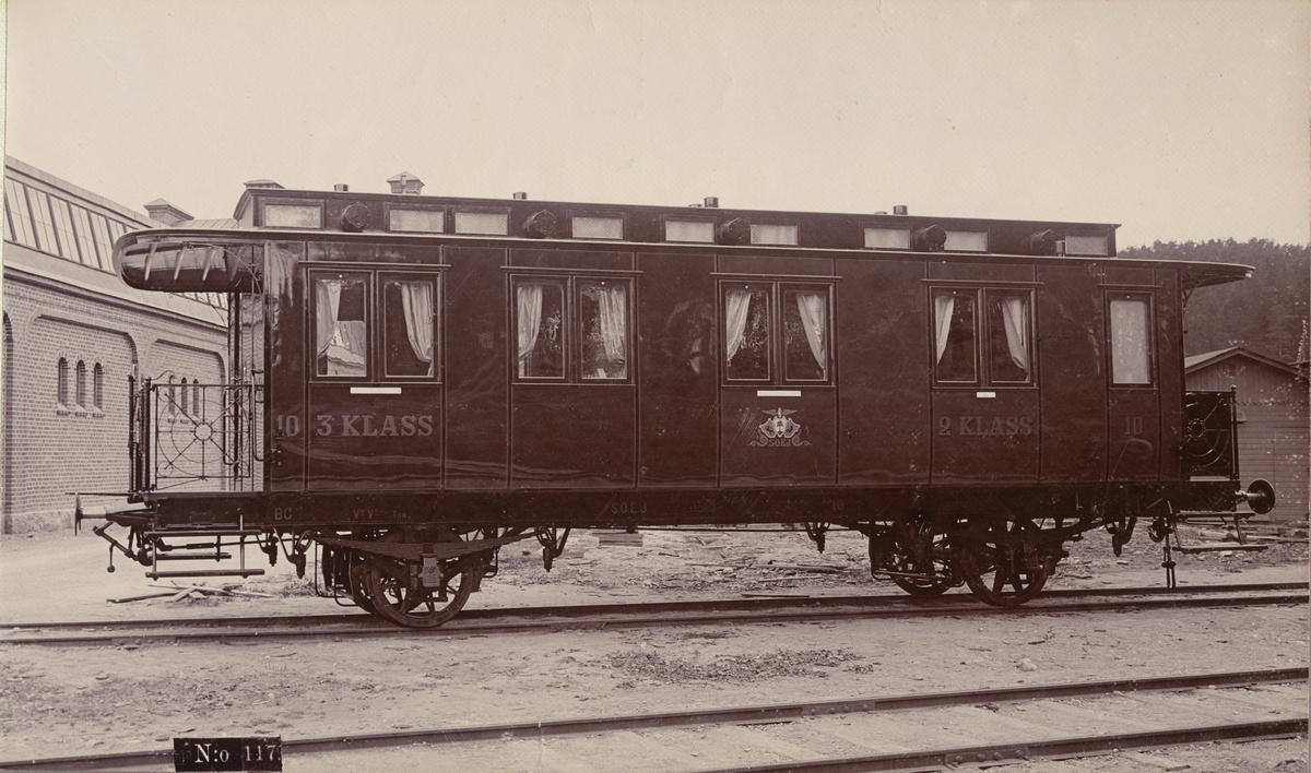 Tågvagn. 2:a och 3:e klass personvagn. Vagnfabriks Aktiebolaget i Södertälge.