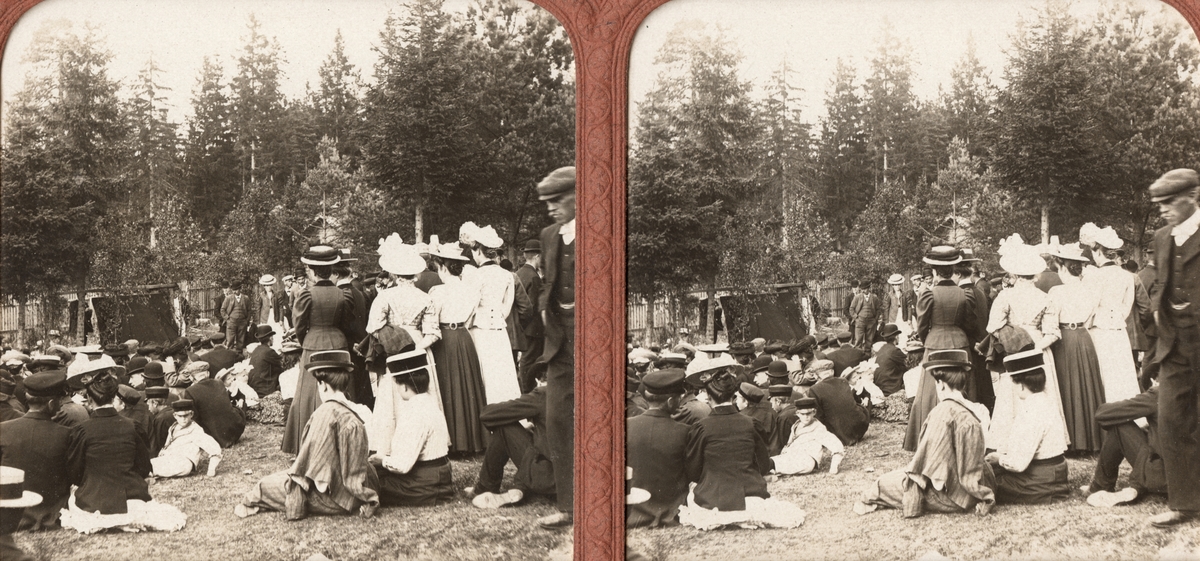Stereobild. Sammankomst i park, Kohlsva Bruk.