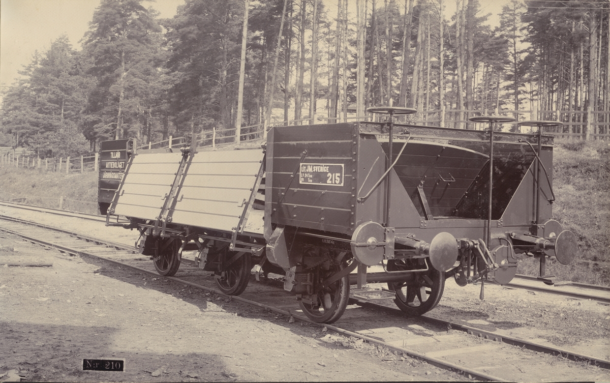 Titel: Tågvagn. Ballastvagn. Ur album: Vagnfabriks Aktiebolaget i Södertälge. Mått i millimeter. Spårvidd: 1435. Lastförmåga i kg: 24000. Vikt i kg: 12000. Bufferhöjd: 1050. Yttre axelavstånd: 4600. Mellan varje axel: 2300. Vagnkorgens längd utvändigt: 7700. Vagnkorgens bredd utvändigt: 2900. Fasta sidornas höjd över golvet: 1000. Sidoluckornas längd: 2080.