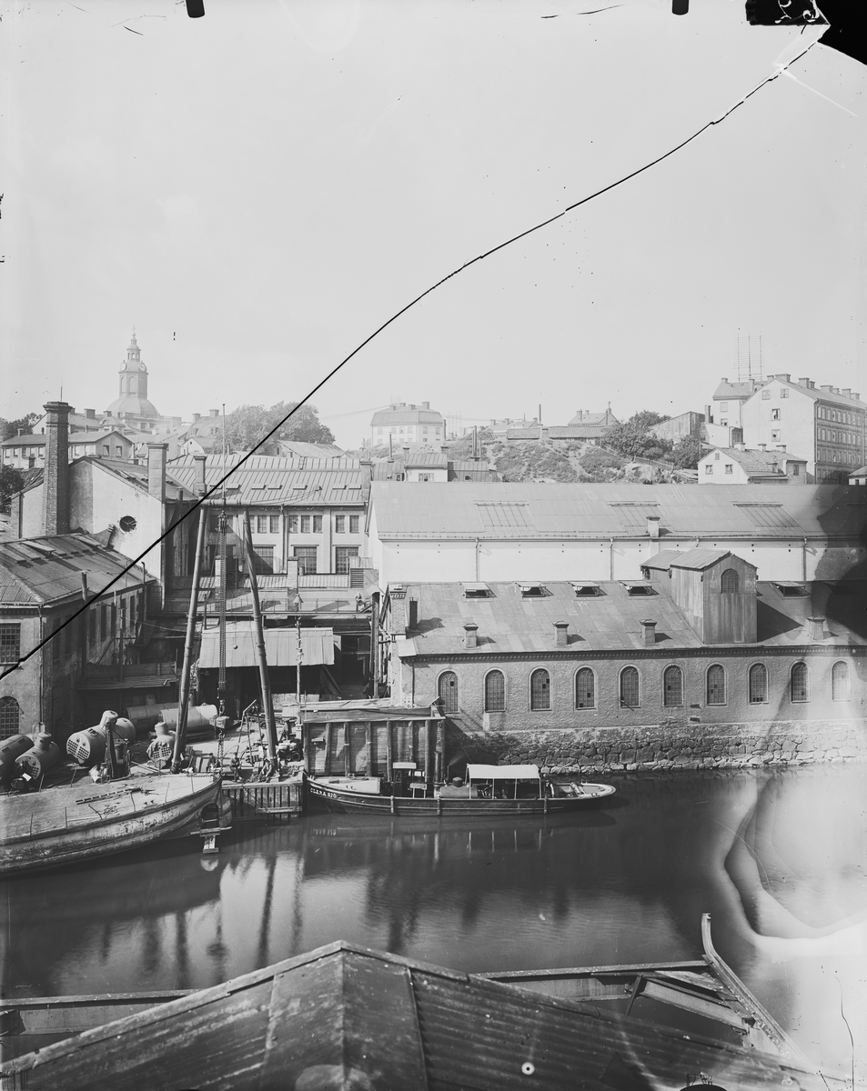 Båt "Clara sjö" vid Bolinders verkstadsindustribrygga på Kungsholmen.