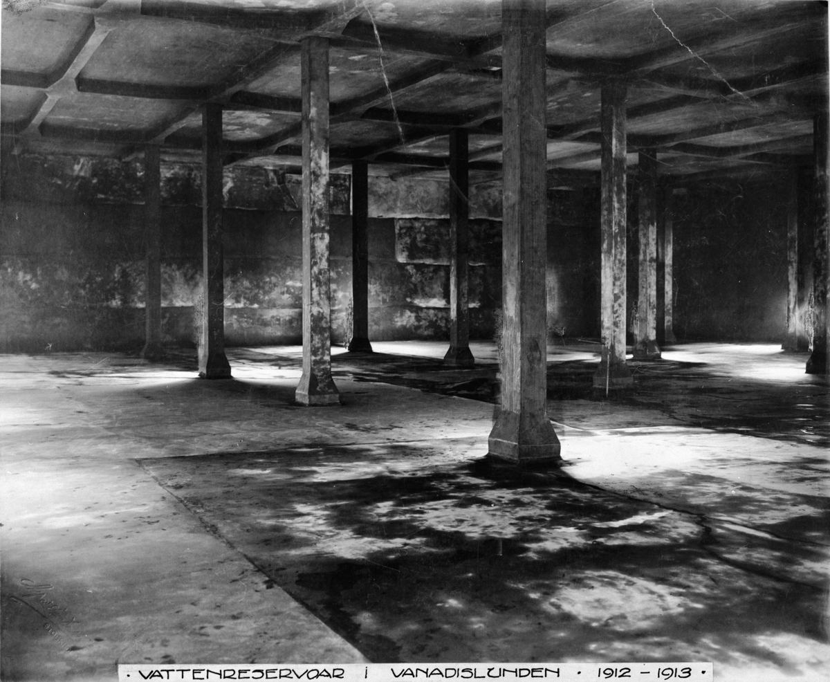 Byggherre: Byggnadsaktiebolaget Contractor, Stockholm. Vattenreservoar i Vanadislunden. Interiör.