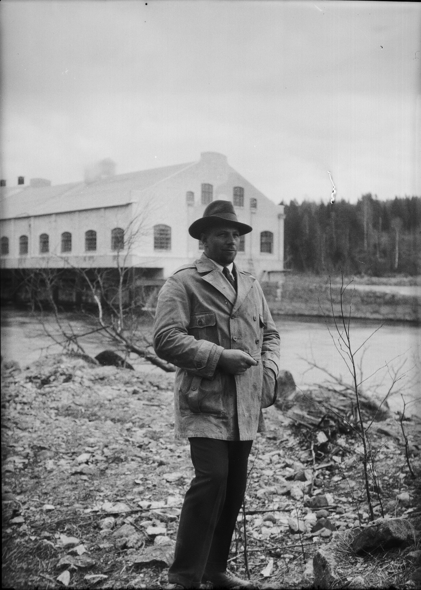 Byggherre: Byggnadsaktiebolaget Contractor, Stockholm. Kraftstation. En person i förgrunden.