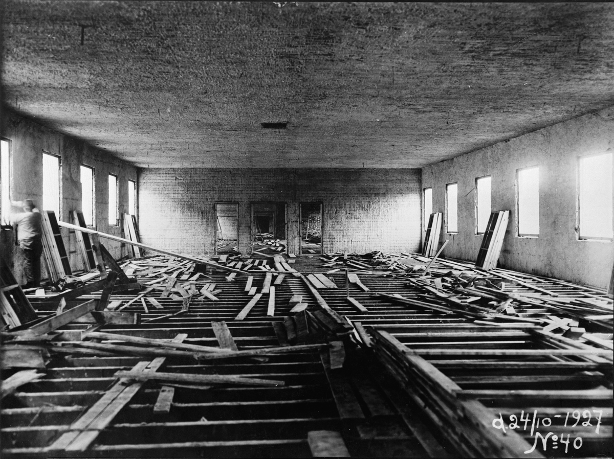 Byggherre: Bygnadaktiebolaget Contractor, Stockholm. General Motors Nordiska AB:s första fabriksbyggnad i Sverige. Arbetsbilder. Hammarbyhamnen 1927.