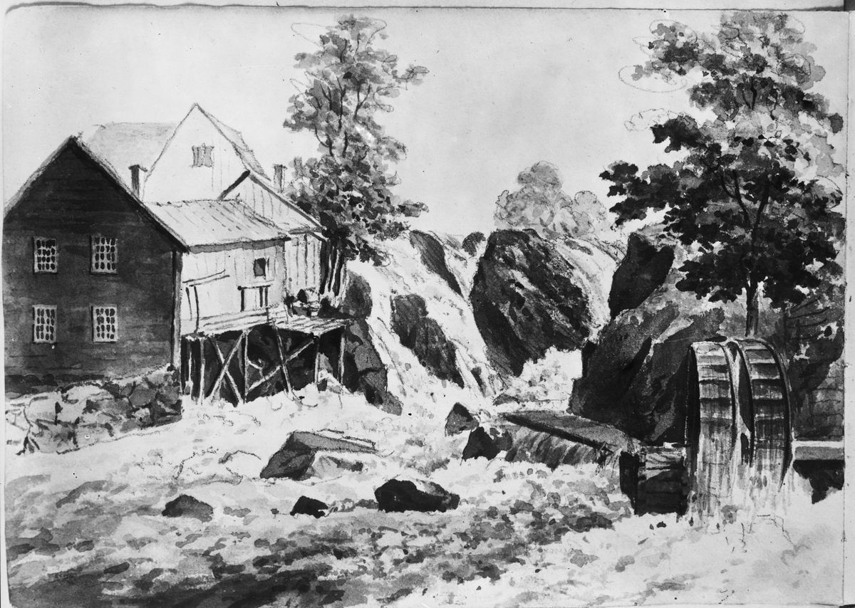 Fallet. Akvarell 1850. Jernkontorets bruksbildskatalog.
