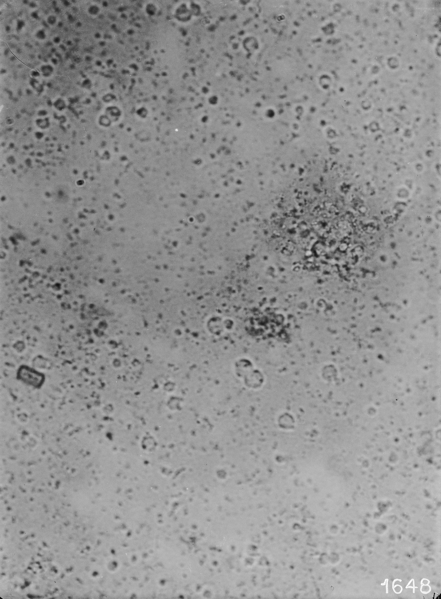 Mikrofotografering av mjölk. Mjölk, förvarad 2 dygn i kylskåp. Prov nr. 20.
