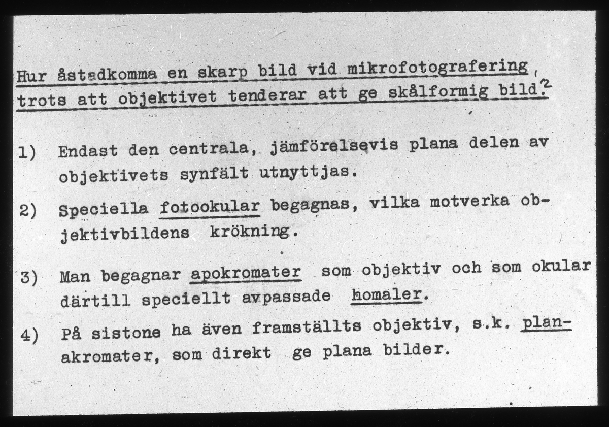 Skioptikonbild från Institutionen för fotografi vid Kungliga Tekniska Högskolan. Använd av professor Helmer Bäckström som föreläsningsmaterial. Bäckström var Sveriges första professor i fotografi vid Kungliga Tekniska Högskolan i Stockholm 1948-1958.