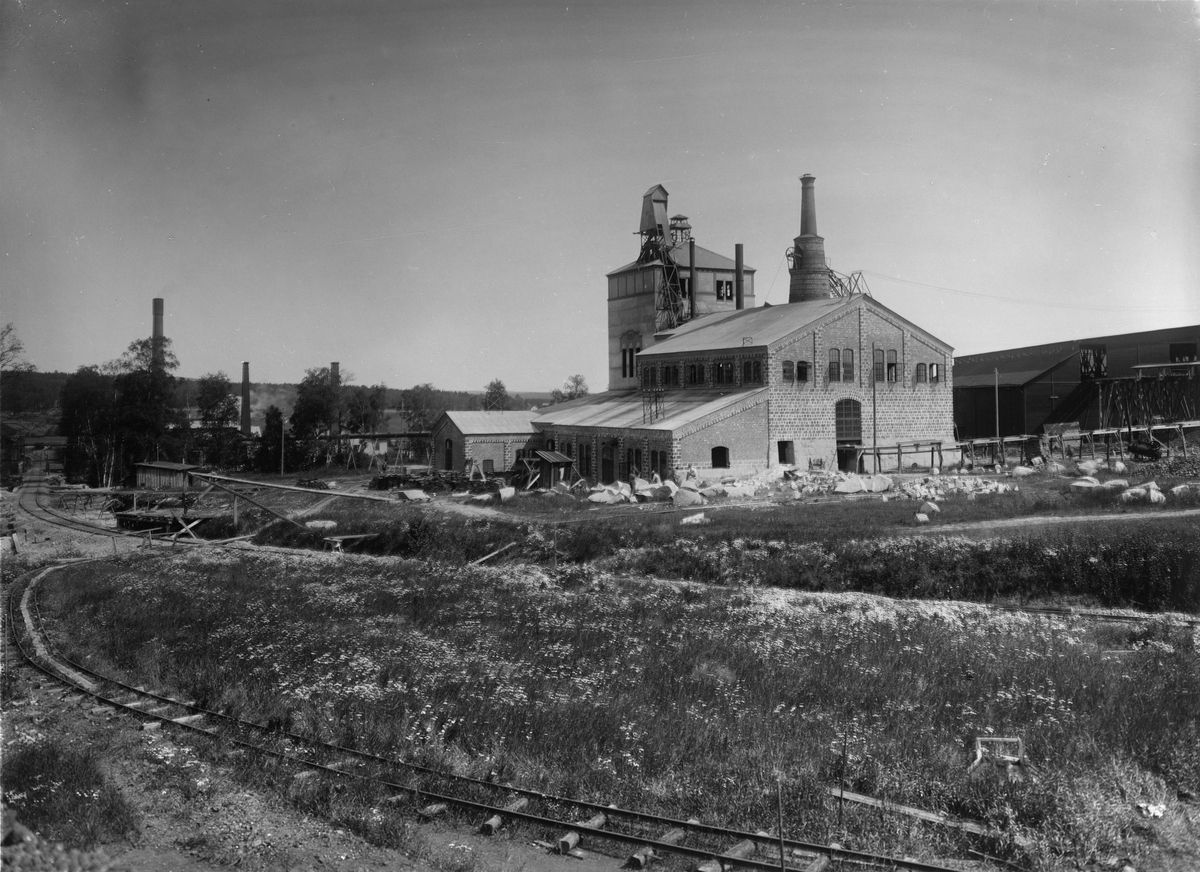 Wikmanshyttan. Nya masugnen där tackjärnet för gjutstålstillverkningen granuleras. Till höger syns en del av kolhuset.