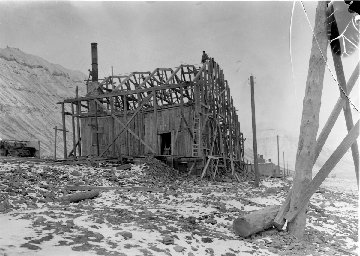 Sveagruvan. Byggnaden av nya kraftstationen 1918.