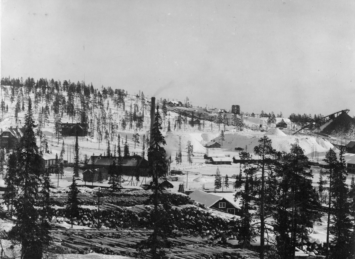 Utsikt från ingenjörsbostaden, Malmbergets gruvor, Norbotten.