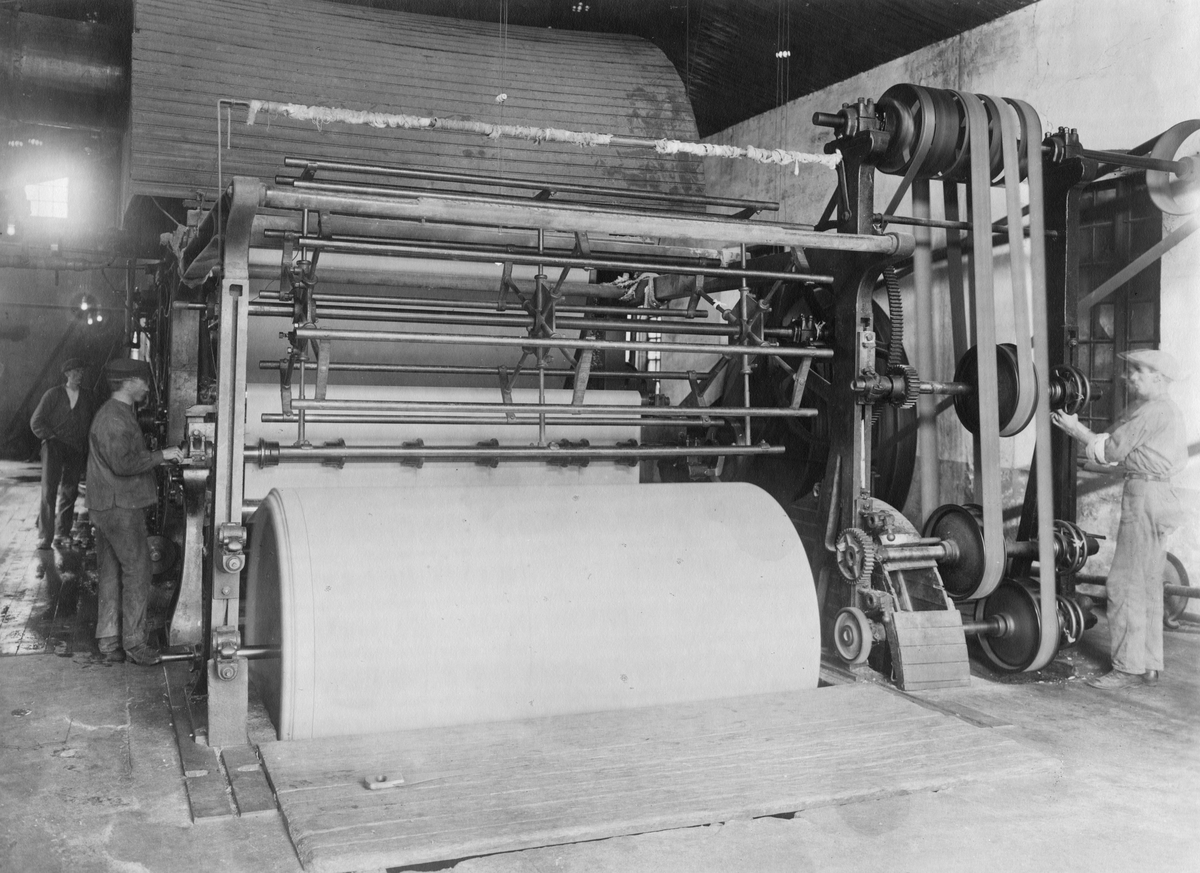 Koppoms pappersbruk. Främre delen av en 100 tum pappersmaskin.