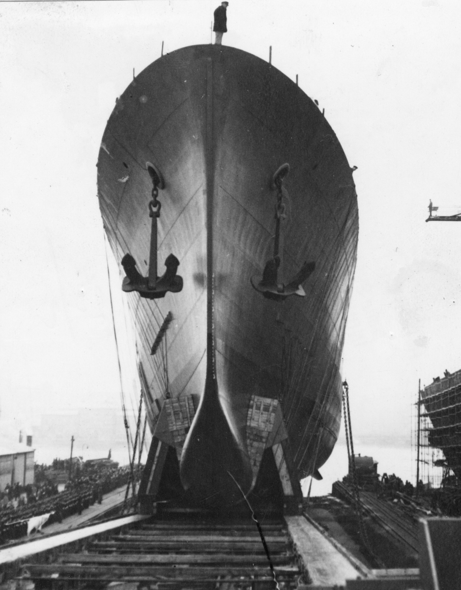 Kryssaren Tre Kronors sjösättning vid Götaverken den 16 december 1944.