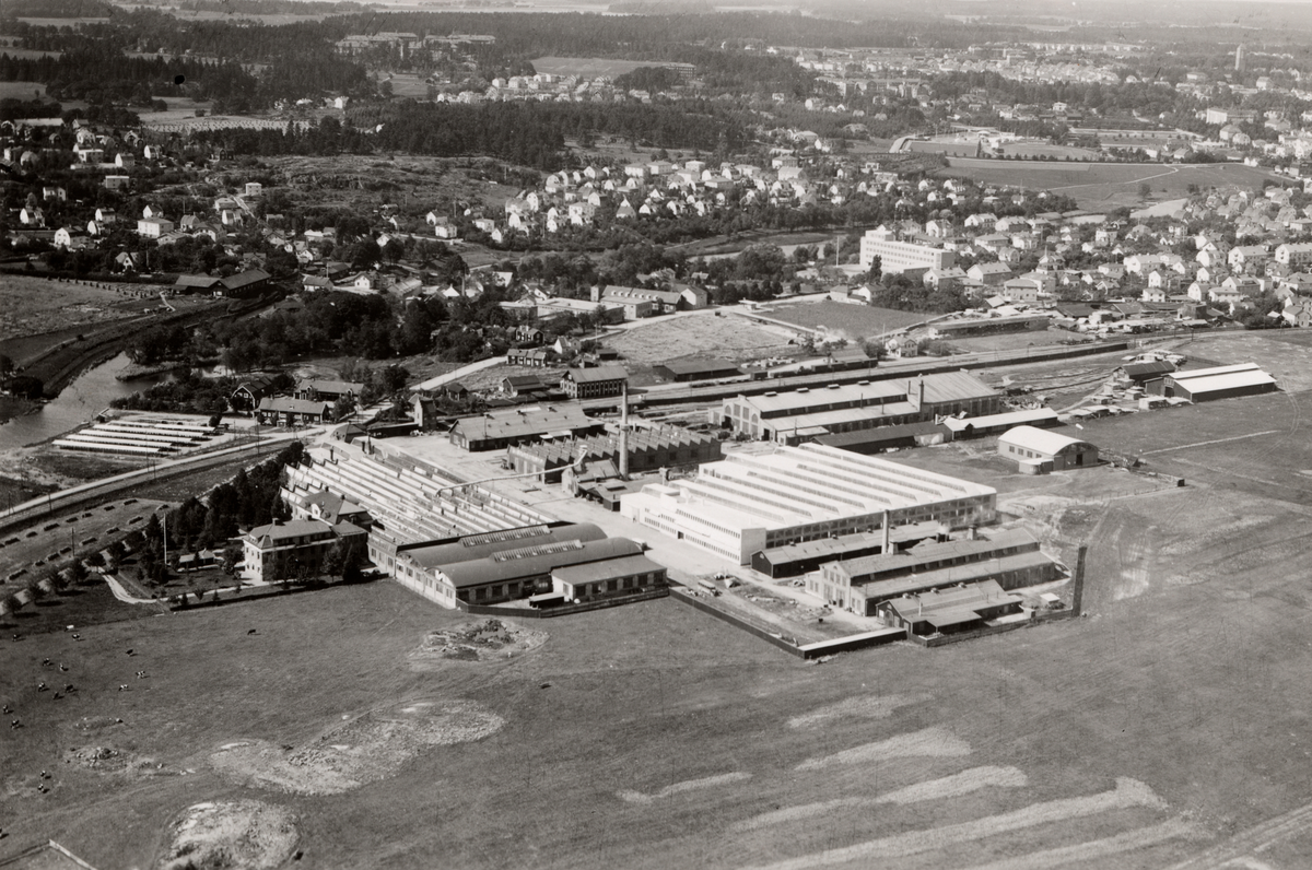 Flygfotografi över AB Svenska Järnvägsverkstäder i Linköping.