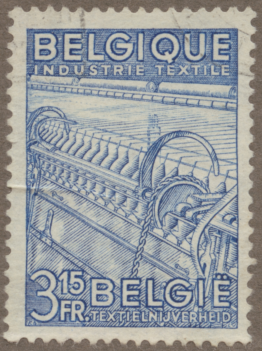 Frimärke från Belgien, 1948. Motiv av textilindustri. Spinnstol i Belgien.