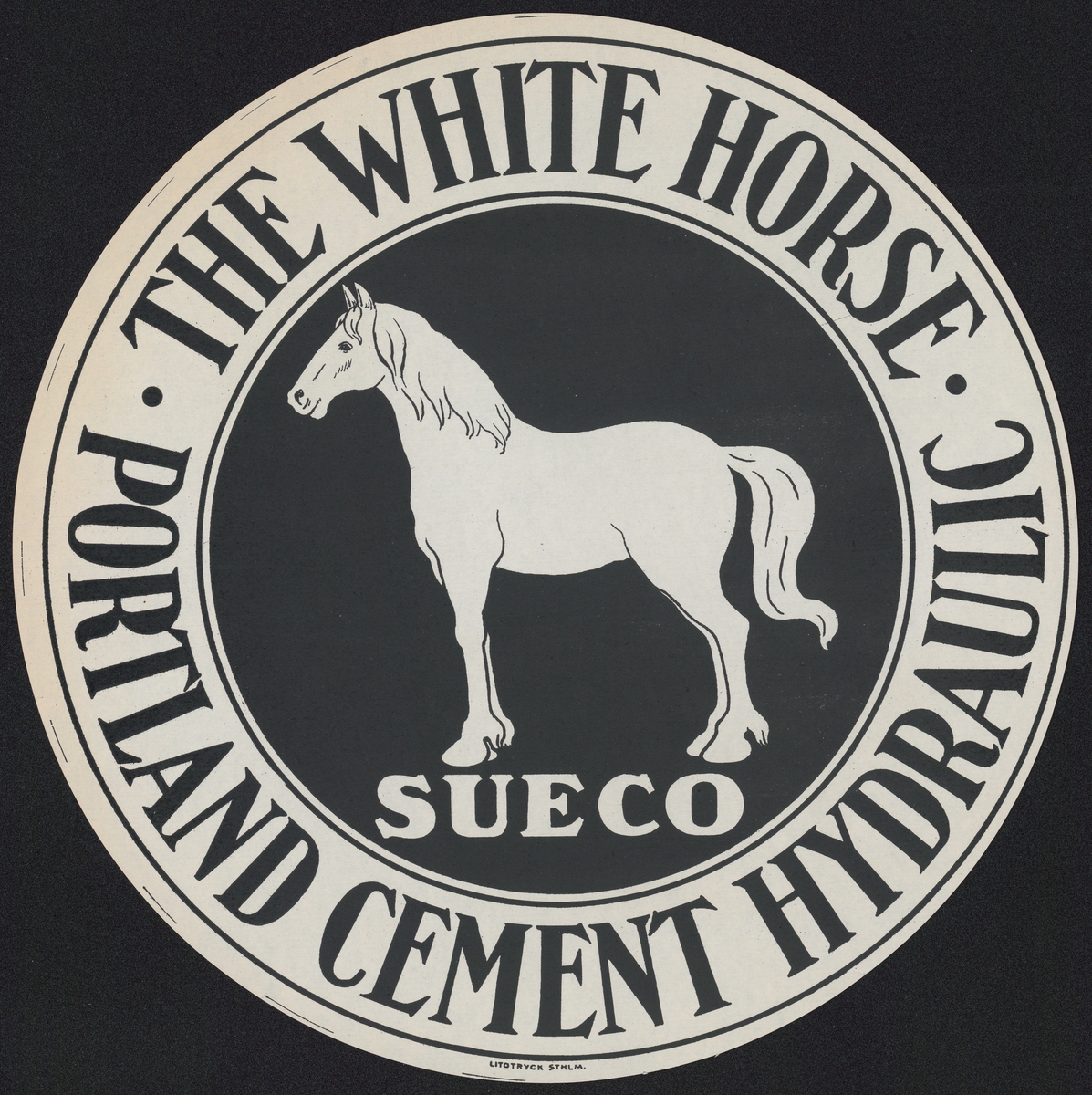 Fabriksmärke för cementpåsar. The White Horse. Portland Cement Hydraulic.