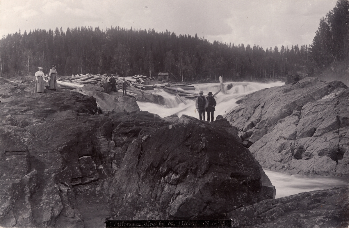 Sällskap på klippa vid Fällforsen, Ume älv.