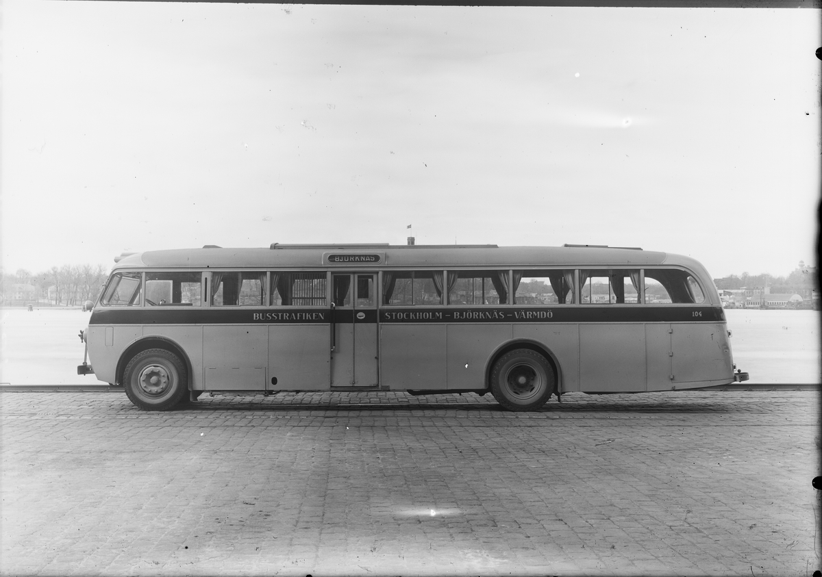 Björknäs Buss från sidan. Fotograferad på stadsgårdskajen i Stockholm.
